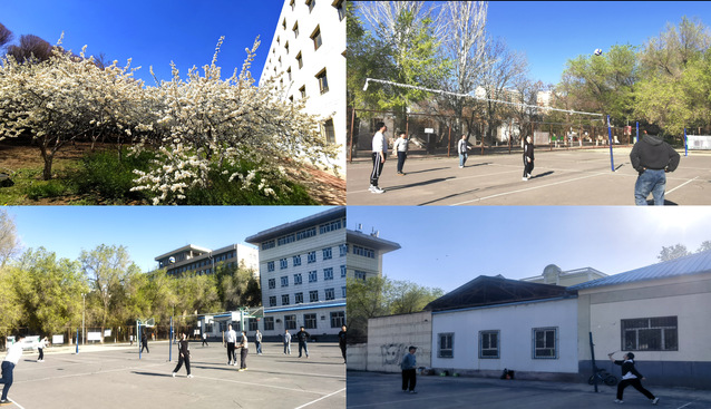 春天是一年中最美的季节,校园里的草儿绿了,蒲公英开出了朵朵黄色的小花点缀其中,教工宿舍楼前的李子树也开花了,老师和学生们观赏着校园的美景,心情愉悦放松。大家又一起打了排球和羽毛球,石文艳老师教大家如何接球,打配合,大家有了很大进步,身体也得到了锻炼。