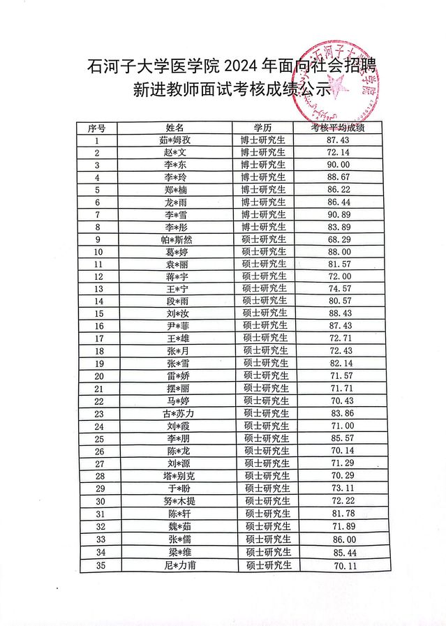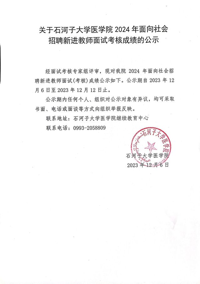 色情导航 2024年面向社会招聘新进教师面试考核成绩公示