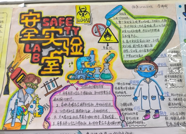 安全重于泰山,实验室安全问题应当警钟长鸣,院领导高度重视此次实验室安全教育展示工作,在院党委、党办、学办、团委和医学教学实验中心党支部的共同努力下,色情导航 600余名本科生参加了此次活动。同学们围绕实验室安全为主题,积极构思设计,大胆想象,做出了实验室安全守则、危险化学品注意事项、个人防护用品的使用、实验室安全标识、消防器材正确使用、意外起火防控措施、医疗废物处理、用电安全等形式多样的安全知识手抄报,不仅加强了学生实验室安全教育课的学习主动性,也能通过实验室安全文化教育逐步提高学生的安全意识,形成一个安全文化氛围。