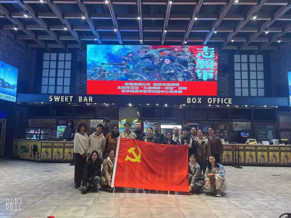 为庆祝中华人民共和国成立75周年,新疆生产建设兵团成立70周年,弘扬爱国主义精神,增强党员的历史责任感和使命感,学习兵团英雄模范人物的精神,医学教学实验中心党支部于2024年10月12日上午组织老师、结亲学生和部分班级学生共同观看了电影《志愿军 存亡之战》,感悟英雄壮举,铸就党性辉煌。