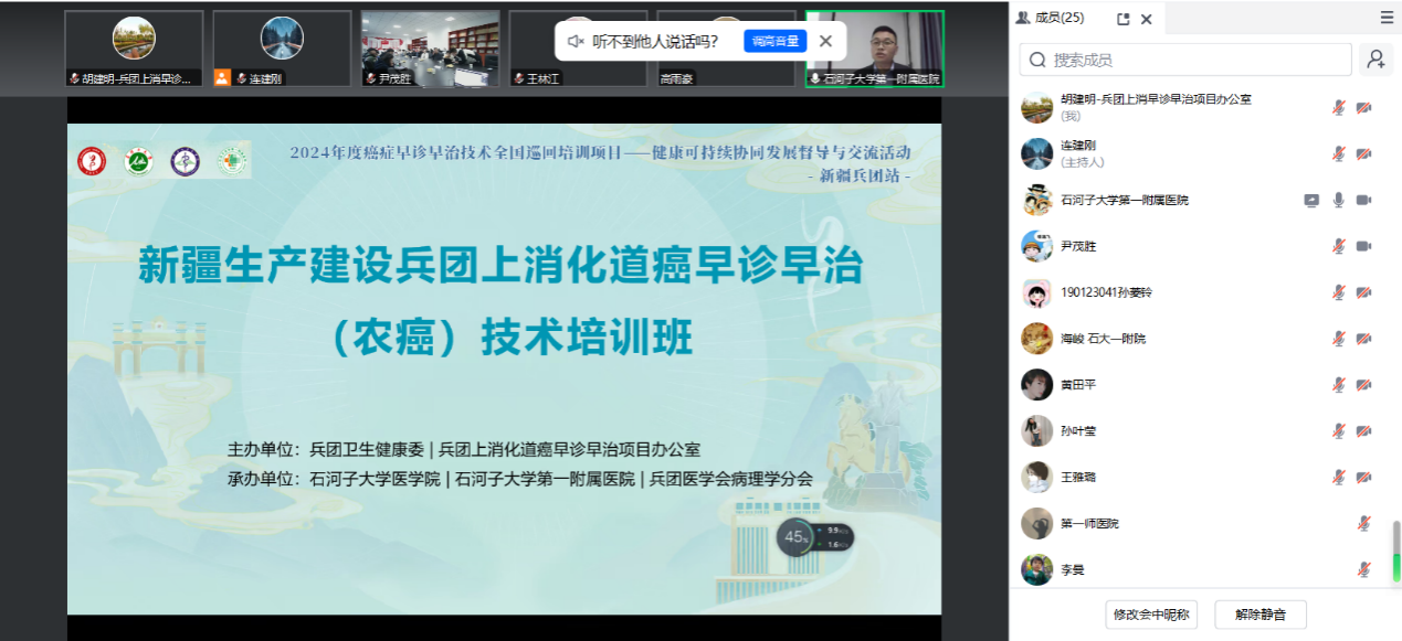 为深入贯彻落实《健康中国行动—癌症防治行动实施方案》相关文件精神,做好 2024 年度上消化道癌早诊早治项目 (农村) 工作,提高项目承担单位专业技术水平和业务能力,2024 年 11 月 2 日,由兵团上消化道癌早诊早治项目办(色情导航