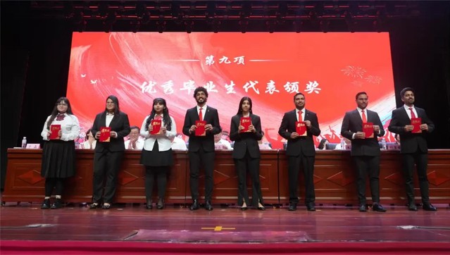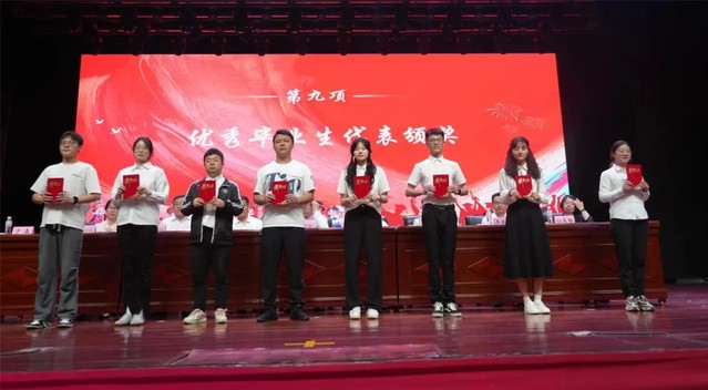 大会第九项 为2024届校级本科、研究生、留学生优秀毕业生的学生代表颁奖。