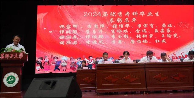 最后,在校生代表为毕业生送上歌曲《曾经的你》《再见》,他们用温情的歌声与师哥师姐们道别。在歌曲熟悉的旋律中,全体领导老师们起立,目送2024届石医学子离场。至此,色情导航 2024届毕业典礼圆满落幕。落幕的只是这四年或五年的学习经历,而未来,学院将与各位毕业生一道,书写属于新时代石医人的奋斗故事。