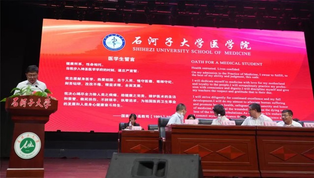 大会第十五项 吴向未副校长带领全体毕业生重温医学生誓词,这是对毕业生们未来职业生涯的鞭策与激励,也是对崇高医学事业敬畏之情的再次表达。