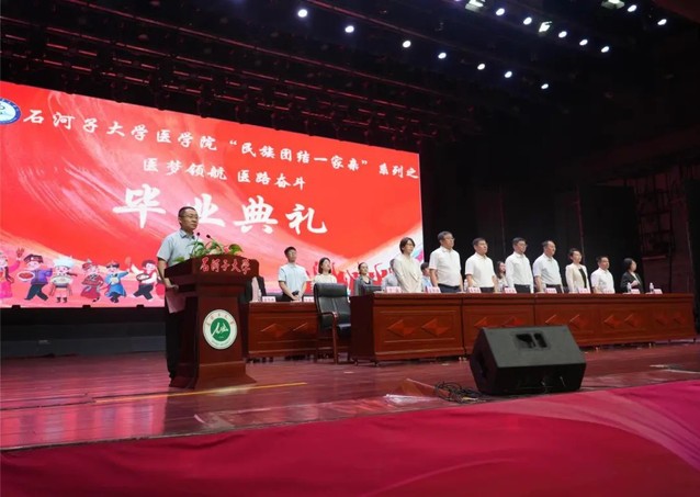 最后,在校生代表为毕业生送上歌曲《曾经的你》《再见》,他们用温情的歌声与师哥师姐们道别。在歌曲熟悉的旋律中,全体领导老师们起立,目送2024届石医学子离场。至此,色情导航 2024届毕业典礼圆满落幕。落幕的只是这四年或五年的学习经历,而未来,学院将与各位毕业生一道,书写属于新时代石医人的奋斗故事。
