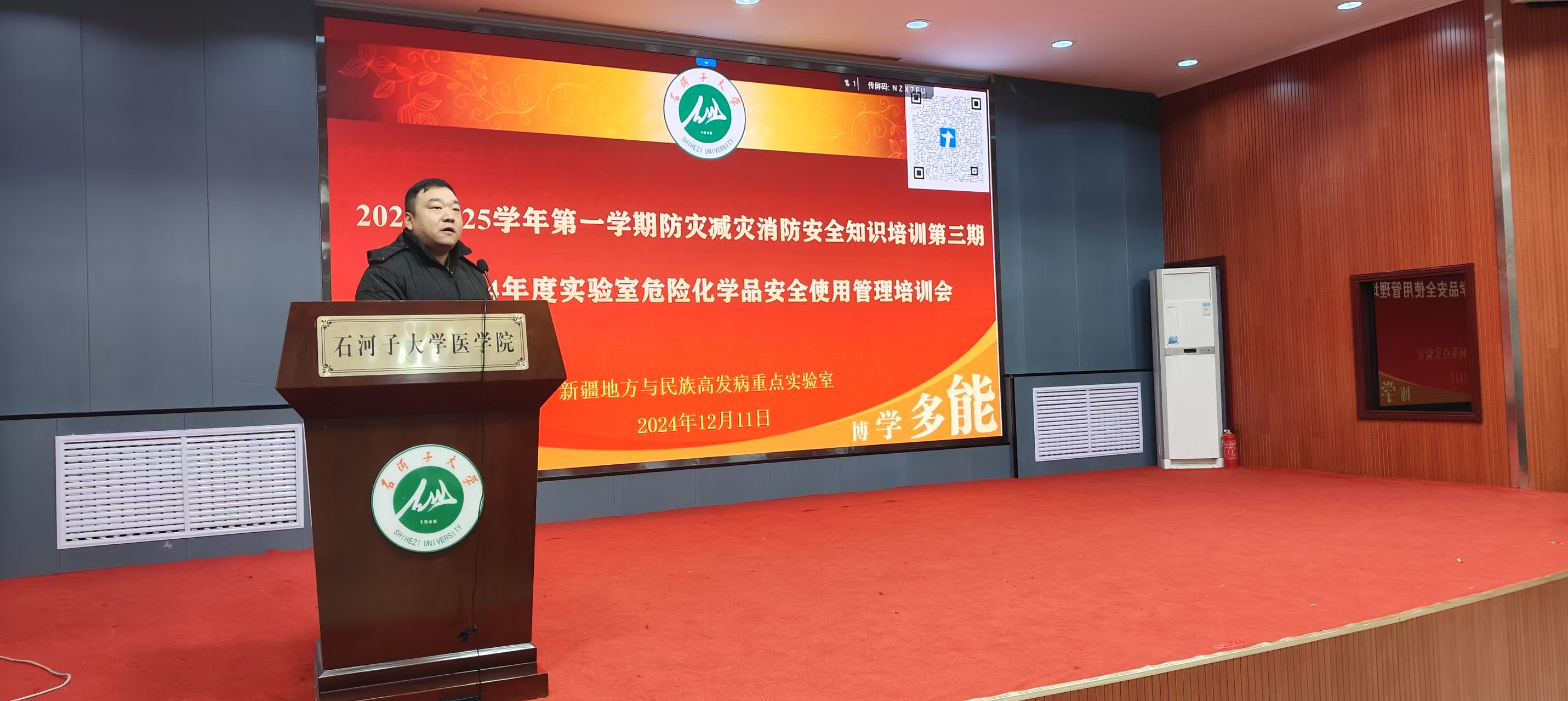 本学期,新疆地方与民族高发病教育部重点实验室按照学院开学前拟定的培训计划,认真组织了三次消防安全知识教育系列培训会,并和消防科来利敏讲师多次交流,不断优化培训内容。通过宣讲消防法律法规、播放警示事故视频、全员参与模拟火灾现场逃生、模拟使用灭火器等各种方式,达到“人人懂消防、个个会应急、全员重安全”的教育目的。系列培训会上全体参会师生现场录像、拍照打卡,积极参与培训活动,三次培训会参与师生均超过100人次。