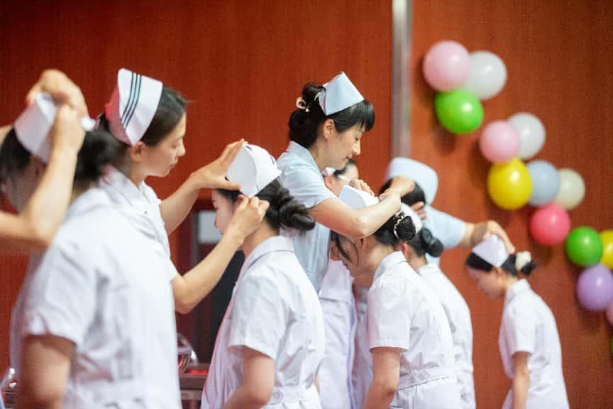 在授帽仪式上,来自附属医院及护理学系的前辈们,为即将踏上征程的2025届毕业生佩戴圣洁的燕尾帽。伴随着庄严的宣誓声,新一代护理人许下“我志愿成为一名白衣天使,坚定救死扶伤信念……燃烧自己,照亮别人,把毕生精力献给护理事业”的南丁格尔誓言,将百年护理精神薪火相传。