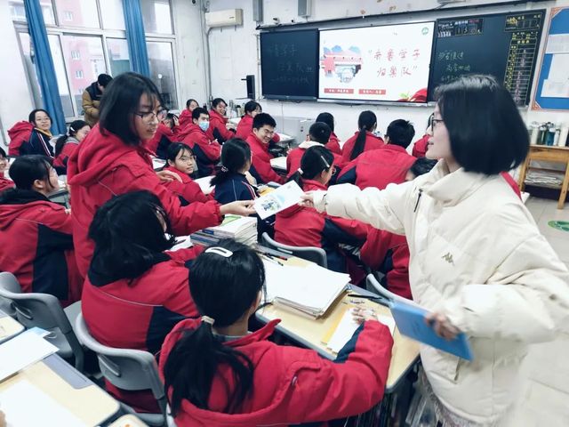 宣讲接近尾声,队员马菲为学弟学妹们送上印有石大校徽的笔记本等小礼物。同时,团队留下答疑QQ群联系方式,为他们的逐梦之路保驾护航。