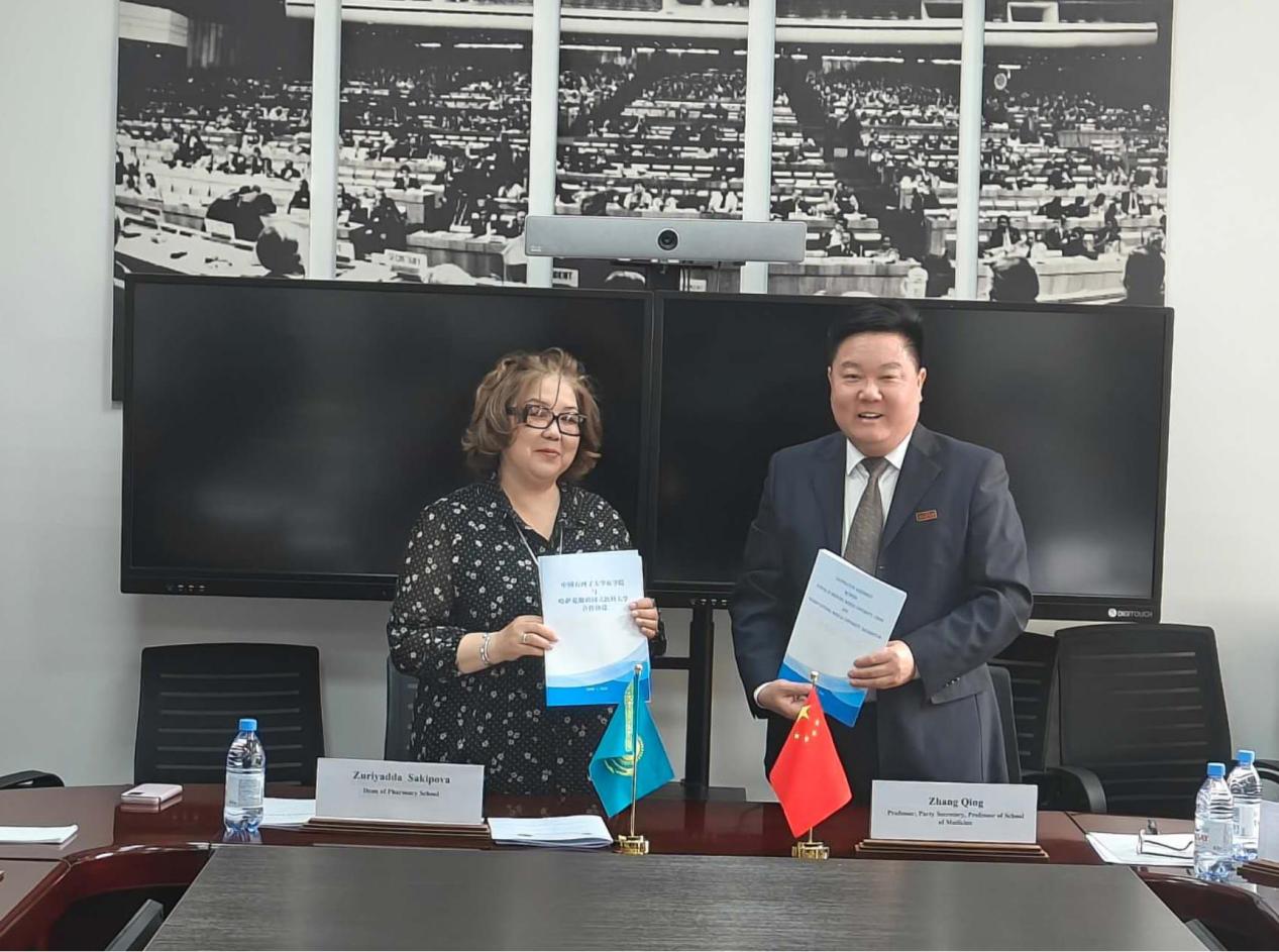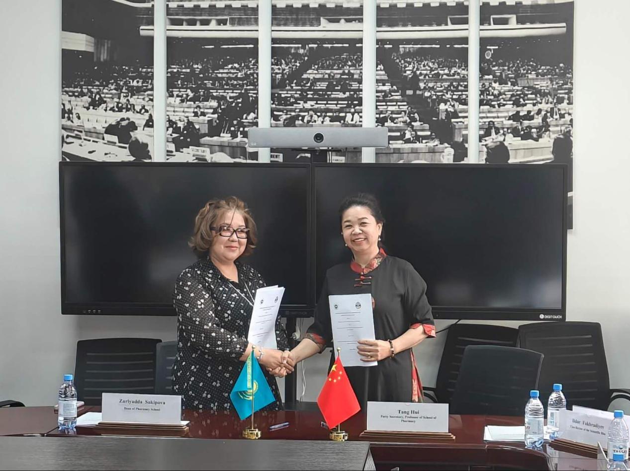 党委书记张青、药学院党委书记唐辉分别代表各自学院,与哈萨克斯坦国立医科大学萨基普娃·祖里娅达·别科季米罗夫娜(Sakipova Zuriyadda Bektemirovna)院长共同签署了院际合作协议。协议的签署标志着双方合作进入了制度化、规范化的新阶段。
