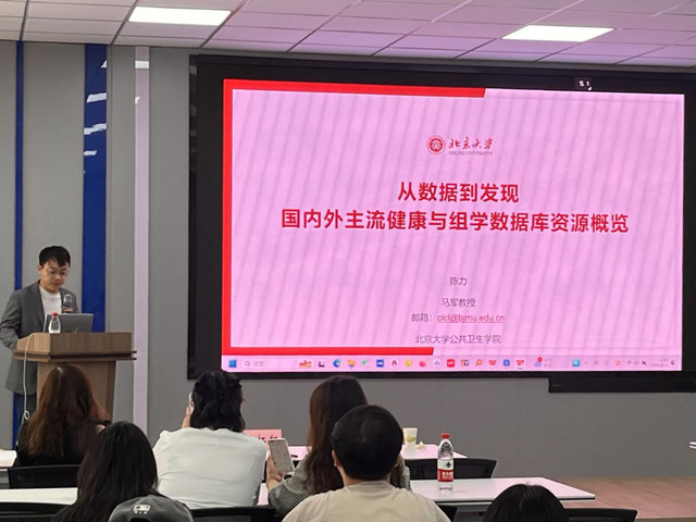 北京大学公共卫生学院陈力博士对从数据到发现:国内外主流健康与组学数据库资源概览进行报告。陈力博士系统介绍了国内外健康与组学数据库的应用,如UK Biobank等国际知名的组学数据库的使用技巧,展示了多组学技术的科研潜力。现场同学纷纷表示,这场讲座为今后的科研方向提供了宝贵参考。