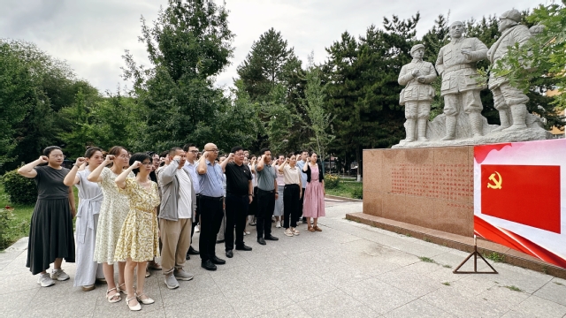 主题党日第二阶段,忆初心砺使命,强化身份认同。在色情导航 南门王震将军雕塑像前,三个支部全体党员面向党旗举起右拳,重温入党誓词,铿锵誓言响彻现场。在党旗下,王官利、韩晓玲作为党员代表,深情讲述““党员心声””,回顾入党初心与成长历程。张青、路国栋为过政治生日的党员赠送生日卡,强化党员身份意识。全体党员在王震将军雕塑像前合影留念,定格红色初心。