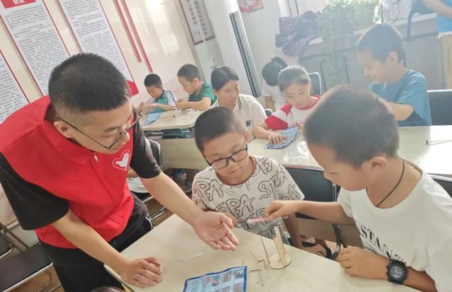 活动现场,志愿者老师耐心细致地介绍完材料用途与组装步骤后,便将永动笔实验材料包一一发放到孩子们手中。孩子们瞬间化身“小小发明家”,迫不及待地动手操作起来。志愿者老师则穿梭其间,随时为孩子们提供指导。有的孩子对磁铁的安装位置拿捏不准,志愿者拿起磁铁,一边讲解同极相斥的原理,一边亲自示范安装。孩子们小心翼翼地安装金属扣、精心缠绕彩条,对科学的热爱尽显无遗。