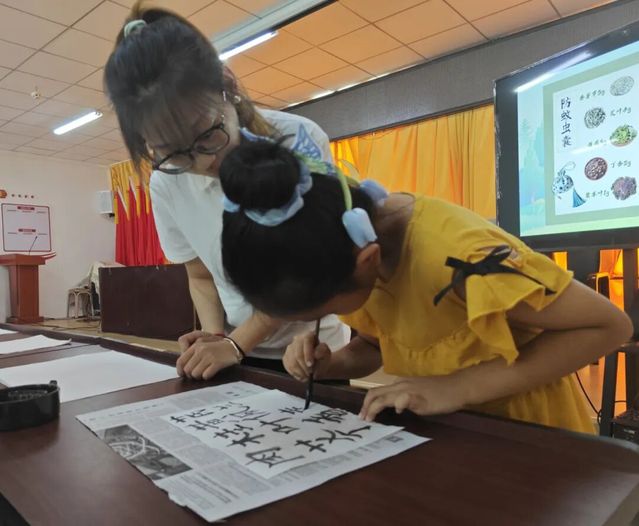 为巩固学习成果,团队精心设置了知识问答和绘画创作环节。孩子们热情高涨,积极抢答关于传统医药以及人体器官功能的问题。在绘画环节,孩子们将心脏、肾脏等人体器官和对应的传统医药画在一起,进一步加深了对两者关联的理解。此外,团队还安排了书法书写环节,让孩子们书写药材名称,在笔墨书香中感受传统文化的魅力。