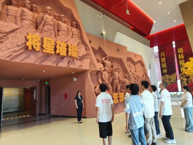 踏入博物馆,队员们立刻被馆内浓厚的历史氛围所感染。在讲解员的带领下,大家依次参观了各个展厅。一件件珍贵的文物、一幅幅泛黄的照片、一段段感人的故事,生动再现了兵团人从解放战争时期的金戈铁马,到屯垦戍边时期的艰苦创业,再到新时代开拓进取的奋斗历程。看到那些在艰苦环境下使用的劳动工具、破旧衣物,以及记录着先辈们战斗与建设场景的资料,团队成员们深刻体会到了老一辈兵团人“热爱祖国、无私奉献、艰苦创业、开拓进取”的伟大精神。