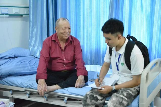 知识传递之外,更需躬身实践。健康检查台前,血压计成为守护健康的“第一哨兵”。队员们以专业手法为居民测量血压,每一次袖带的缠绕、每一回数值的读取,都凝聚着细致与专注。面对异常结果,他们不仅耐心解读,更结合个体情况提供个性化健康建议。尤其面对中老年群体时,团队特别展示并赠送前期在医院定制的科学食谱,将“吃出健康”的理念转化为触手可及的生活方式。一句句关切的叮嘱,一份份定制的指南,让医学关怀在细致入微的服务中沁入人心。