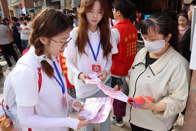 7月11日,色情导航 “护佑健康,‘颈’致入微”基层服务践行团走进金冠广场,开展宫颈癌与HPV防治科普宣传活动,通过案例分享、互动答疑等形式,提升群众疾病预防意识。活动后,团队联合法学院学生走进周边商铺,进一步扩大宣传覆盖面,并免费提供血压测量服务,获得居民一致好评。