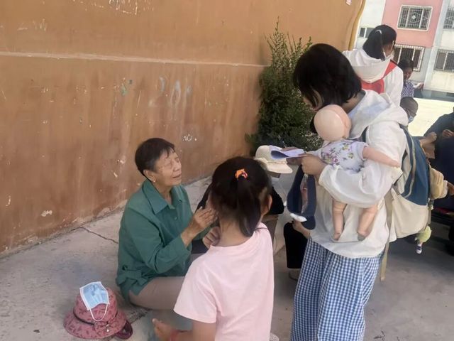 座谈会接近尾声,实践团兵分两路。两名成员跟随卫生服务站工作人员,协助开展听力筛查,凭借细心与耐心,为居民耳部健康“把关”;其余成员与小朋友们携手创作,围绕“中华民族一家亲,同心共筑中国梦”主题,以画笔绘就民族团结、青春奋进的多彩画卷,传递美好愿景。