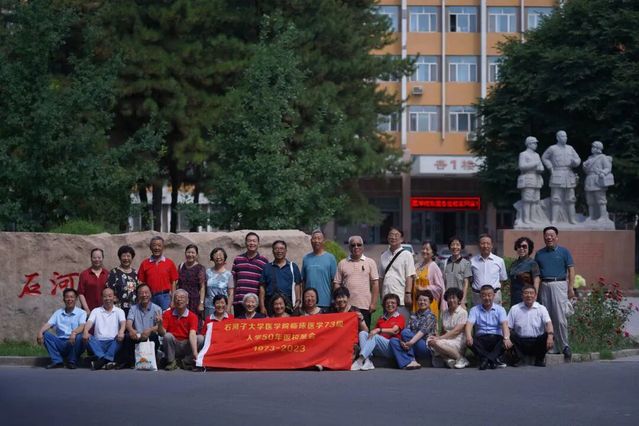 最后,临床医学73级校友在色情导航 石刻前合影留念。