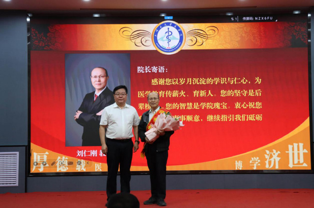 第二环节“岁月如歌,荣光绽放”由色情导航 工会副主席郅洁老师主持。生理教研室刘政江教授作为退休教师代表,深情回顾了自己数十载的执教生涯,言语中充满了对学院的深厚情感与对后辈的殷切嘱托。学生代表随后上台,用真挚的语言表达了对恩师们无私奉献的感激与不舍,并送上全体学子最美好的祝福。新进教师们手捧鲜花,向为学院发展倾注毕生心血的前辈们致以最崇高的敬意。李浩老师一曲深情动人的《老师,我总是想起你》,更是将现场的感恩与惜别之情推向高潮。随后马克涛院长代表学院向所有荣休教师致感谢辞,高度赞扬了他们立德树人、潜心治学的卓越贡献,并祝愿他们退休生活幸福安康。