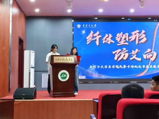“纤体塑形,防艾向前”团队的冯家妮、赵一丹同学,从健康教育和艾滋病防治的角度出发,强调了科普宣传的重要性,并通过实际行动展示了其实践价值,为提升公众健康意识和防艾知识做出了积极贡献。