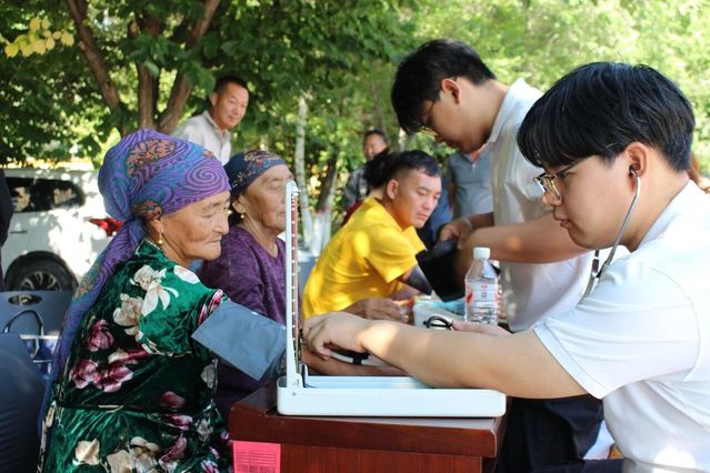 1.边疆义诊,健康相授:团队联合当地团场医院,依次前往九师广场、一六七团连队及社区、一六八团社区、一六八团派出所及司法所开展义诊服务,免费测量血压及血糖,为边疆群众及戍边工作者送去健康关怀。