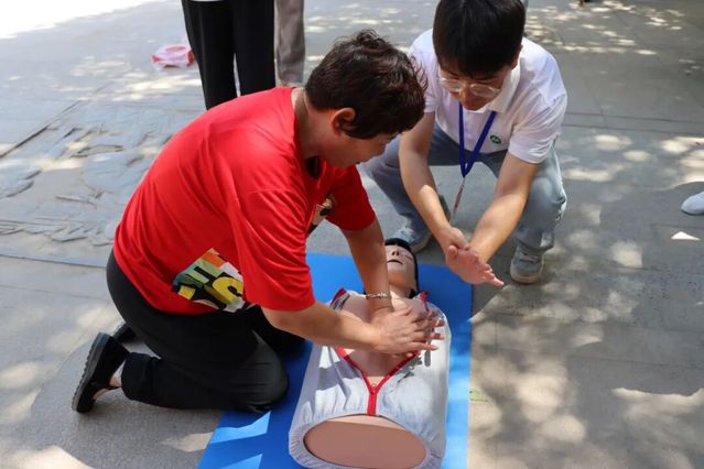团队在第三师御景苑社区广场开展宫颈癌知识宣讲与急救实操培训,教授群众心肺复苏、海姆立克急救法等关键技能;在医院病房为居民讲解伤口包扎、心肺复苏等实用技能,让急救知识从课堂走向生活,提升基层群众应急救护能力。