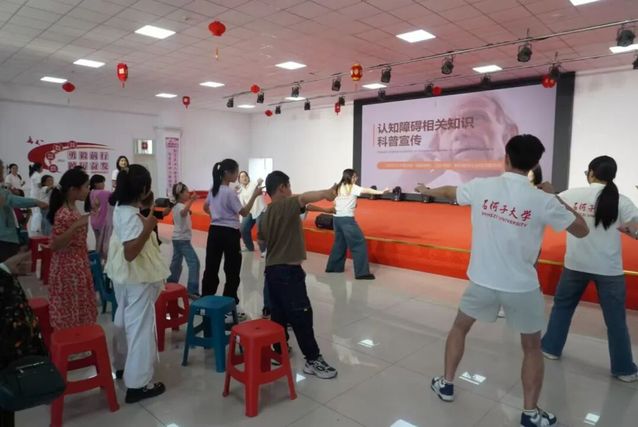 宣讲结束后,实践团成员带领居民们做起了手指操和八段锦。手指操简单易学,能有效锻炼手指的灵活性,对预防认知障碍有一定的帮助;八段锦则是一种传统的健身气功,动作舒缓,具有调节身心、增强体质的作用。在实践团成员的耐心指导下,居民们认真学习每一个动作,跟着节奏慢慢练习。活动现场,居民们的脸上洋溢着开心的笑容,他们纷纷表示,这样的活动既有趣又有益,希望以后能经常开展。