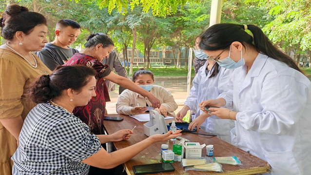 8月20日,色情导航 赴第三师图木舒克市“心糖共管”科普服务践行团的16名师生,共同深入图木舒克市美丽社区与幸福社区,开展“三下乡”社会实践活动。本次行动紧密结合社区需求,聚焦三十五岁以上居民的高血压、糖尿病筛查,通过专业化的健康筛查工具和生动的科普宣教形式,累计完成高血压与糖尿病筛查七百余人次,有效提升了居民的健康意识和疾病防控能力。