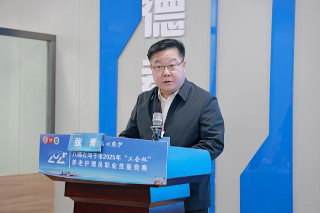 张青书记在致辞中表示,本次竞赛以“精技砺能·暖心照护”为主题,是积极响应国家高技能人才队伍建设部署、顺应师市养老护理事业发展需求的重要举措。他指出,随着兵团人口老龄化进程加快,老年人对专业照护的需求日益提升。竞赛对标国家级赛事标准,从理论、实操、照护计划到人文关怀全方位检验选手素养,不仅是技艺比拼的赛场,更是行业交流的平台与人才培养的摇篮。