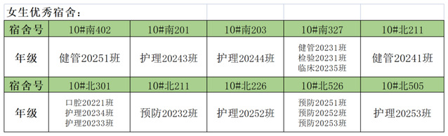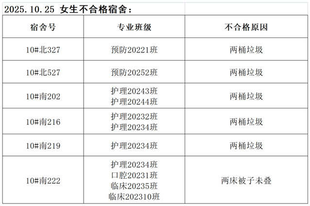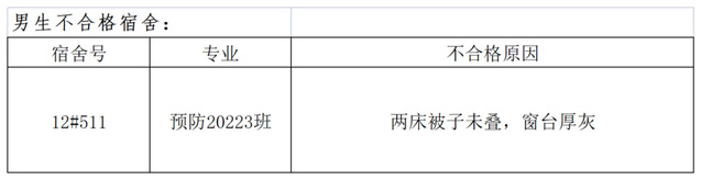 需改进的宿舍公示: