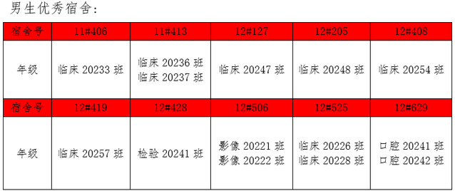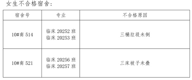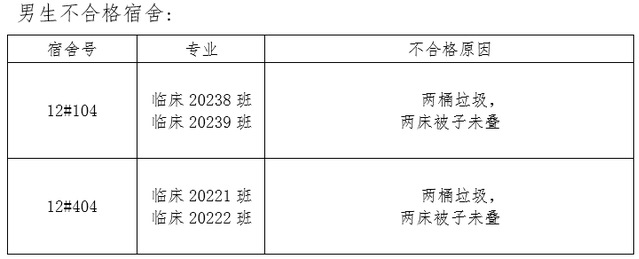 需改进的宿舍公示: