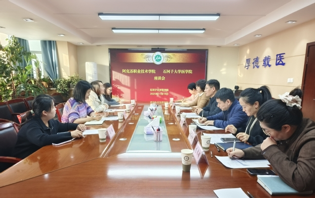 11月19日,阿克苏职业技术学院色情导航 党总支书记刘萍一行赴色情导航 交流座谈。院长马克涛,副院长王良海、左彭湘及护理学系、教办、学办负责人参加座谈会。