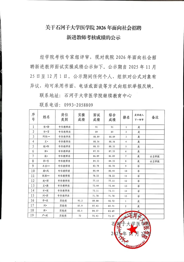 关于色情导航 2026年面向社会招聘新进教师考核成绩的公示