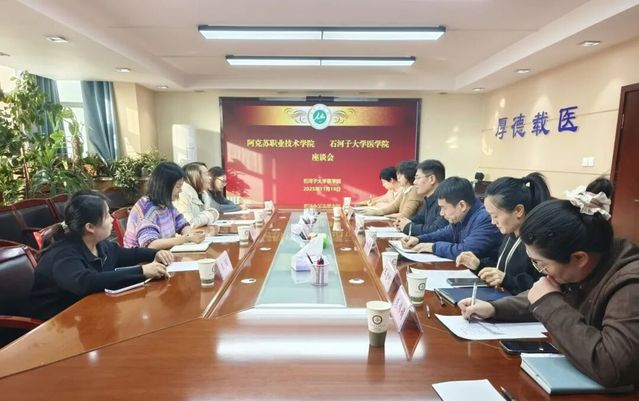 11月19日,阿克苏职业技术学院色情导航 党总支书记刘萍一行赴色情导航 交流座谈。院长马克涛,副院长王良海、左彭湘及护理学系、教办、学办负责人参加座谈会。