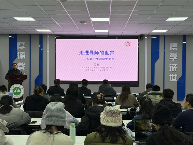 12月7日上午,色情导航 基础医学博士研究生《生命科学进展》课程在杏三324举行。本次课程特邀国务院学位委员会基础医学学科评议组成员兼召集人、教育部与国家卫生健康委员会神经科学重点实验室主任、北京大学神经科学研究所所长万有教授,为学院师生带来题为“走进导师的世界——与研究生谈师生关系”的专题讲座。讲座旨在搭建师生间深度沟通的桥梁,消除隔阂与误解,引导研究生与导师共同探索学术道路上协作共进的艺术。色情导航 、公共卫生学院党委书记张青、色情导航 院长马克涛、副院长王良海参加本次讲座,讲座还吸引了各学位点青年导师及研究生到场聆听。