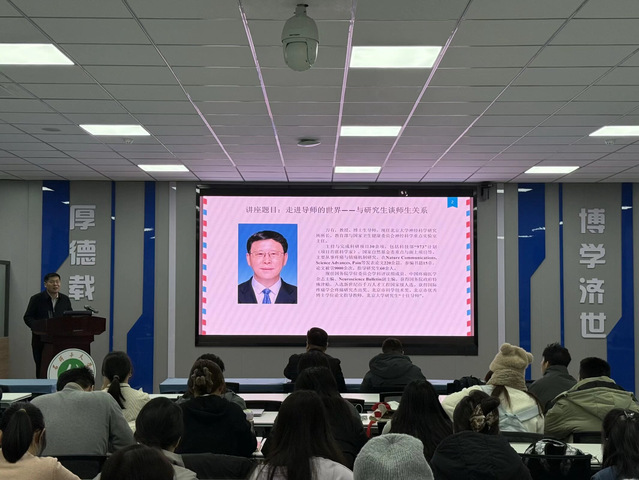 万有教授首先引领大家“走进导师的世界”。他深入剖析了当代高校导师所承担的多重角色:他们既是学术领域的指导者、研究项目的负责人,也常常是课题经费的管理者、学生心理的观察者以及职业发展的引路人。同时,导师自身也面临着多方面的压力,包括激烈的学术竞争、繁重的教学与科研任务、项目结题要求以及工作与家庭的平衡问题。随后,讲座转向研究生的内心世界。万有教授梳理了研究生阶段常见的困惑,如研究方向迷茫、科研进展受阻、对导师指导风格不适应、对未来出路感到焦虑等。他强调,读研不仅是知识的深化,更是思维训练、品格养成和人际能力锻炼的关键时期。万教授指出:“最理想的师生关系,最终应走向‘相互成就’。学生在导师的指导下茁壮成长,取得卓越成果;导师也因学生的成功而实现学术传承与理念增值,共同为学术领域贡献力量。”