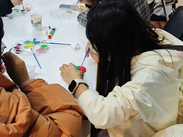 创作环节中,参与者们领取空白石膏娃娃、丙烯颜料与画笔等工具,瞬间化身“心灵画师”,全身心沉浸在创作的乐趣里。他们或是用柔和的暖色系描摹生活里的小确幸,或是用大胆的色彩碰撞宣泄内心的活力,或是与身边伙伴轻声交流灵感,在互动中彼此启发。现场氛围轻松而自由,大家渐渐忘却外界的纷扰,进入专注愉悦的个人创作中。原本朴素单调的石膏娃娃,在一笔一画的雕琢中被赋予独特的生命力,成为一个个承载着创作者心意的温暖载体。