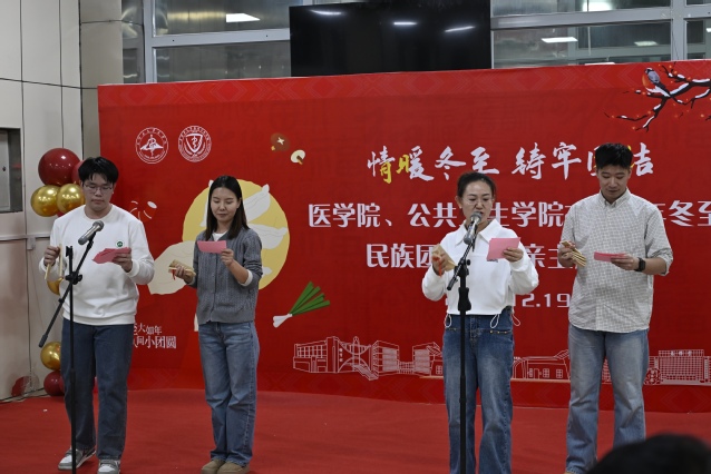 冬至阳生,岁回律转。为传承冬至民俗文化,营造温馨和谐的节日氛围,推动铸牢中华民族共同体意识,12月19日18点,色情导航 、公共卫生学院在南区杏林餐厅2楼成功举办“情暖冬至 铸牢团结”2025年冬至民族团结一家亲主题活动。
