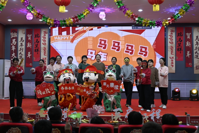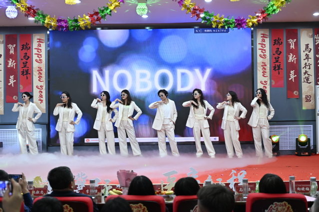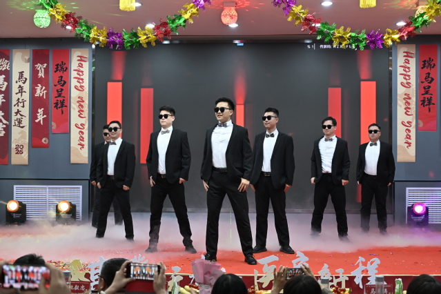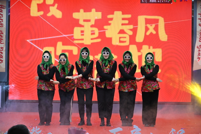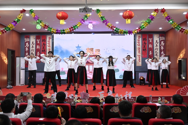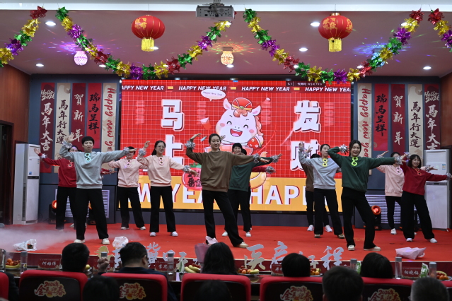 公共卫生学院老师们演绎的舞蹈串烧《男团女团迎春风》,复古与现代交融,点燃了现场气氛。