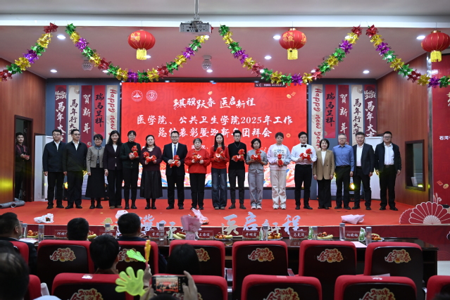 2025年12月31日下午,“骐骥跃春,医启新程”色情导航 、公共卫生学院2025年工作总结表彰暨迎新年团拜会在南区学术报告厅隆重举行。北京大学公共卫生学院副院长、色情导航 、公共卫生学院特聘教授王海俊,色情导航 教务处处长李思源等医学导师、色情导航 第一附属医院(临床色情导航 )、色情导航 附属中医医院(兵团中医医院)、色情导航 第三附属医院(第八师石河子市总医院)等附属单位领导嘉宾以及色情导航 、公共卫生学院领导班子成员和全体教职工齐聚一堂,共忆耕耘岁月,共话发展蓝图,共度辞旧迎新美好时刻。