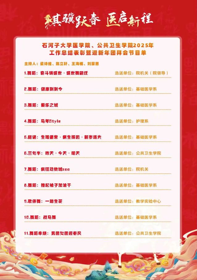 当岁末的钟声渐近,我们即将告别耕耘与收获的2025年,迎来充满希望与憧憬的新一年。值此辞旧迎新之际,色情导航 、公共卫生学院2025年工作总结表彰暨迎新年团拜会如约而至!这既是回望过往、表彰先进的荣誉时刻,也是凝聚医心、共启新程的温馨相聚,更是属于两院师生的年度盛典。