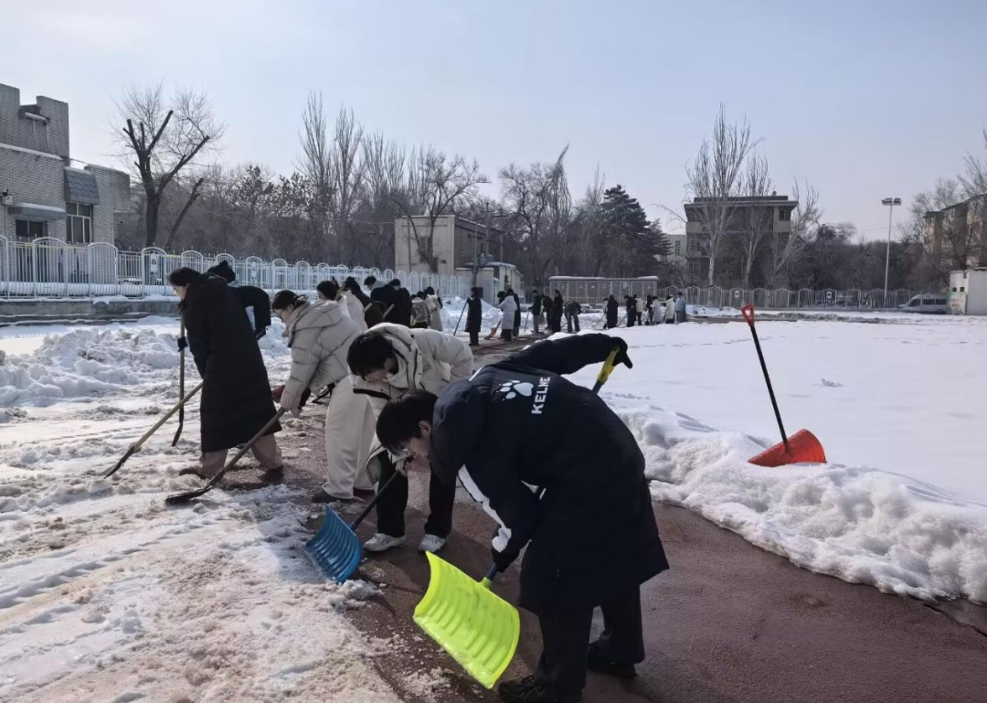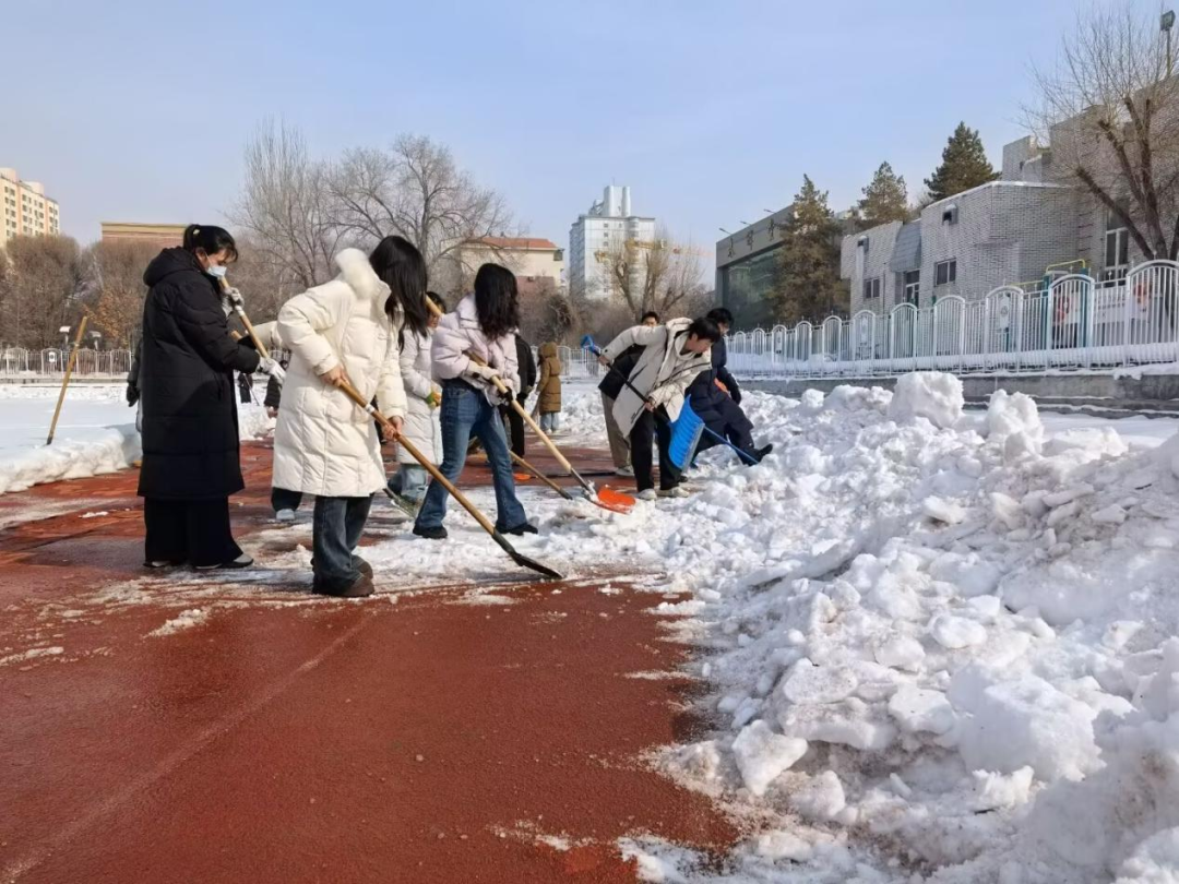 活动当天,志愿者们准时集结,在工作人员统一安排下迅速分工、有序行动。大家不畏严寒、热情高涨,手持铁锹、扫帚、推雪板等工具奔赴各自区域,充分展现了青年学子积极向上、乐于奉献的精神风貌。
