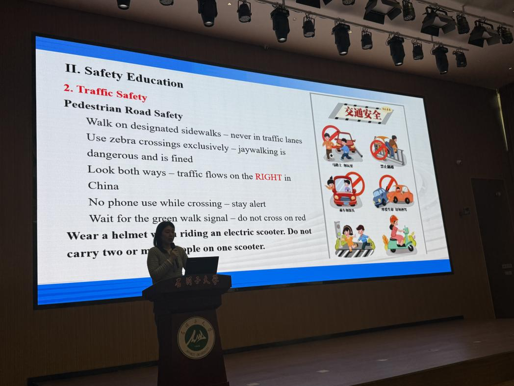 随后,留学生辅导员张梦雅围绕学风建设与安全教育两大重点,对相关工作进行了细致安排与强调。她强调,医学事业关乎生命健康,责任重大、使命光荣,全体留学生要进一步端正学习态度,严守课堂纪律,主动钻研专业知识,积极营造勤学、善思、笃行、共进的优良学风。同时,辅导员张梦雅结合留学生在华学习生活特点,围绕校园安全、人身安全、财产安全、网络安全、出行安全等重点领域,结合典型案例开展警示教育,并细致讲解了在华法律法规与校纪校规,提醒同学们时刻绷紧安全之弦,强化自我防范意识,规范日常行为举止,确保新学期学习生活平安有序、顺利推进。