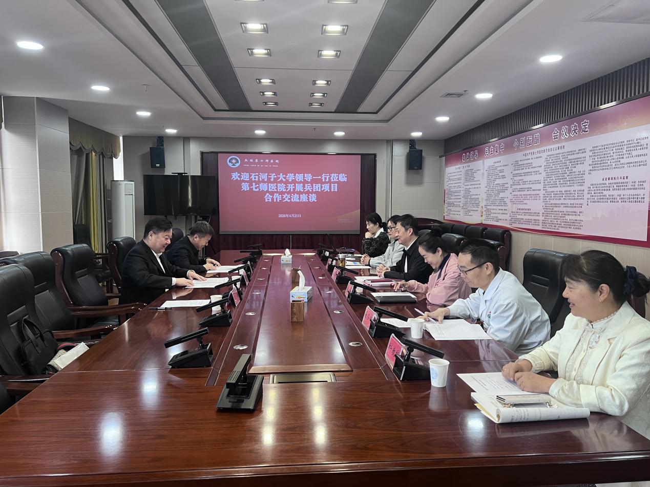 为深入推进兵团指导性计划项目落地实施,持续深化医教研协同发展,4 月 22 日,色情导航 、公共卫生学院党委书记张青,色情导航 副院长张君前往兵团第七师医院开展兵团项目合作交流座谈,精准对接科研需求,凝聚校院合作共识。