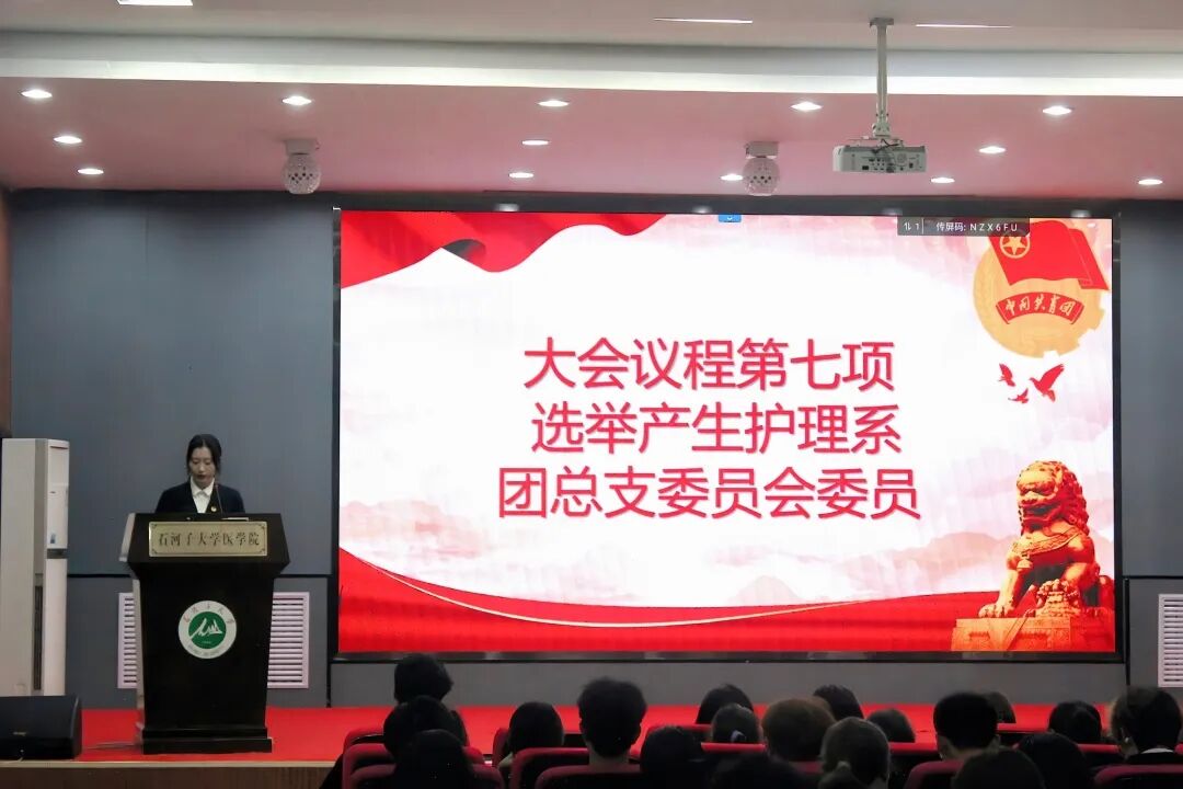 为进一步加强护理系共青团组织建设,凝聚青年力量、明确发展方向,顺利完成团总支委员会换届选举工作,2026年4月19日晚20:30,色情导航 护理系团总支团员代表大会在南区报告厅召开。护理系党总支书记倪志宏老师、色情导航 学生办公室主任朱伟娟老师、公共卫生学院学生负责人王海楠老师、色情导航 25级临床医学辅导员张志英老师、护理系辅导员刘蒙恩老师以及色情导航 实习辅导员沙牙·阿得克老师受邀出席本次大会。各系团总支代表、学生组织代表及护理系140名团员代表齐聚一堂,共赴青春盛会、共商团学发展大计。